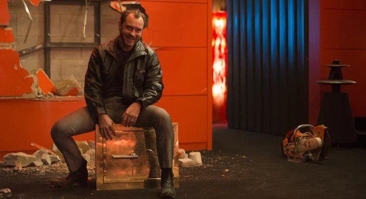 The opening monologue sets up the rest of “Dom Hemingway”. We hear a prison door open while visually we see red, and then we watch in a mid-shot as a naked Dom (Jude Law) gives a three minute monologue about his private part. It’s a scene that writer/director Richard Shepard won’t let you turn away from. It’s something that shows the insecurity, vulnerability, anger, poetic wordsmithing and self-taught swagger that is stored up inside Dom. It sets the rules for a stylistic character study of Dom Hemingway, a flawed safe-cracker who despite his bravado is just a man who wants to be loved.