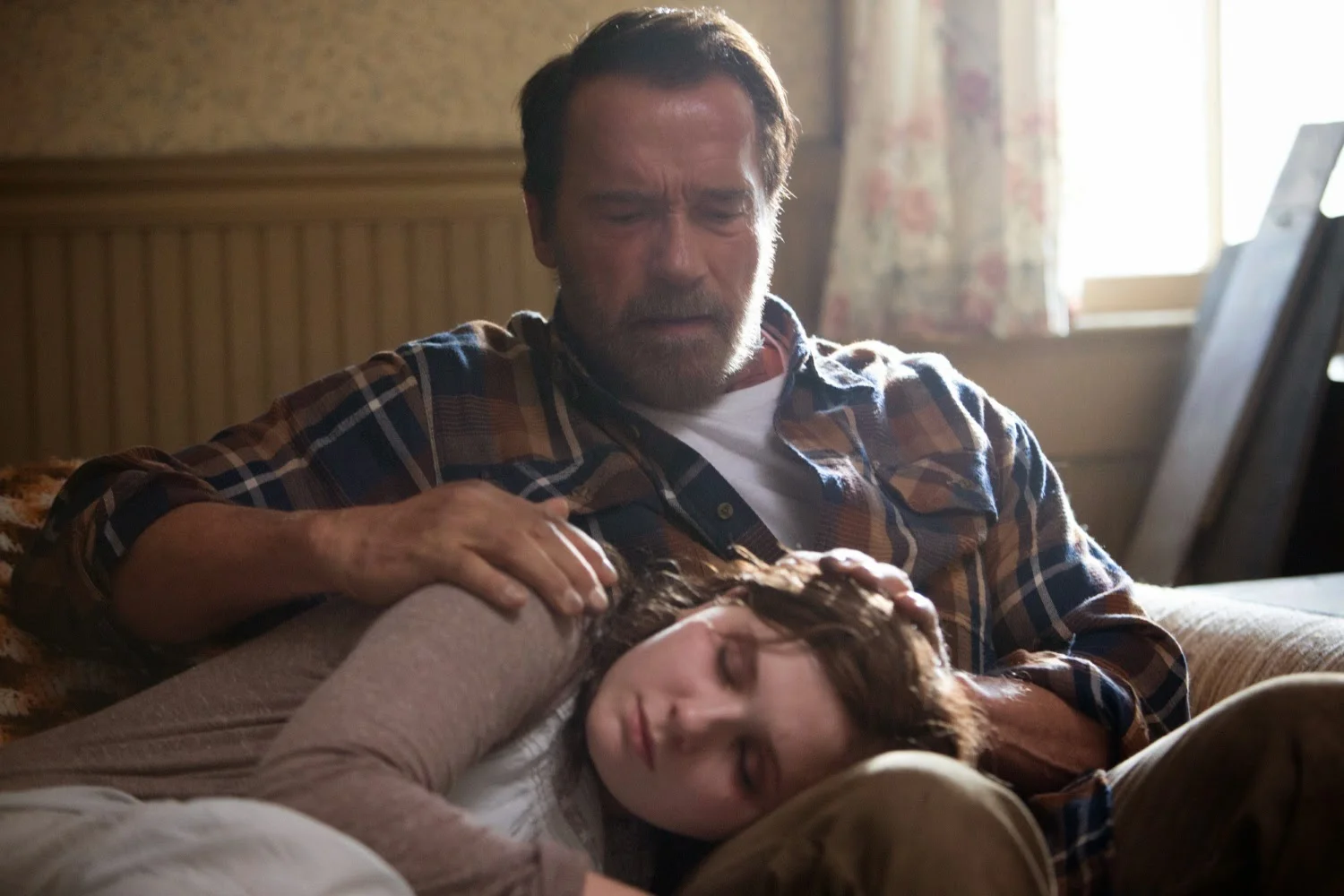 There’s nothing more powerful than a parent’s love for their child. Wade (Arnold Schwarzenegger), a small town farmer, has spent weeks out in the zombie-ravaged city searching for his daughter Maggie (Abigail Breslin). He brings her back home after finding her in a hospital with an oozing zombie bite.